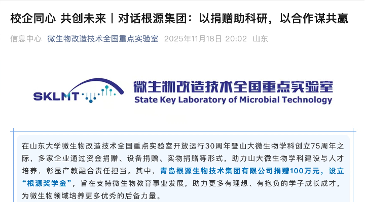 根源集團(tuán)與山東大學(xué)微生物技術(shù)國(guó)家重點(diǎn)實(shí)驗(yàn)室舉辦校企交流會(huì)